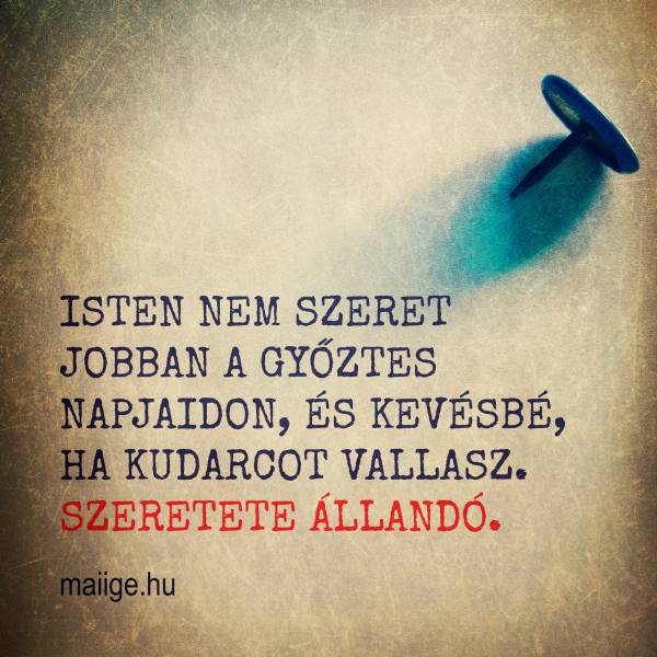 Isten nem szeret jobban a győztes napjaidon, és kevésbé, ha kudarcot vallasz. Szeretete állandó.